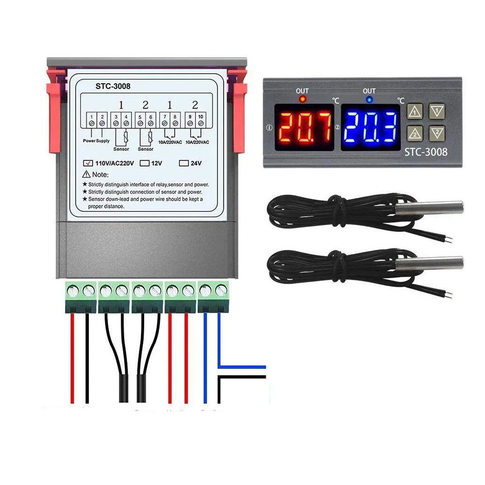 Цифровой терморегулятор/термостат встраиваемый, программируемый Stance-3008 220Виспользуется для измерения температур в диапазоне от -55 до +120 градусов с высокой точностью. Электронный терморегулятор имеет удобную конструкцию для встраивания в корпус холодильника, аквариума, инкубатора, теплицы и других объектов, где требуется контроль температурного режима. Передняя панель при монтаже остается снаружи для контроля над отображаемой температурой и выставления настроек. Контроллер температуры оснащен двумя цифровыми дисплеями с подсветкой, рядом с ними расположены клавиши управления. Терморегулятор термостат поддерживает два режима работы в паре с нагревателем или охладителем. Терморегулятор питается от сети 220В.